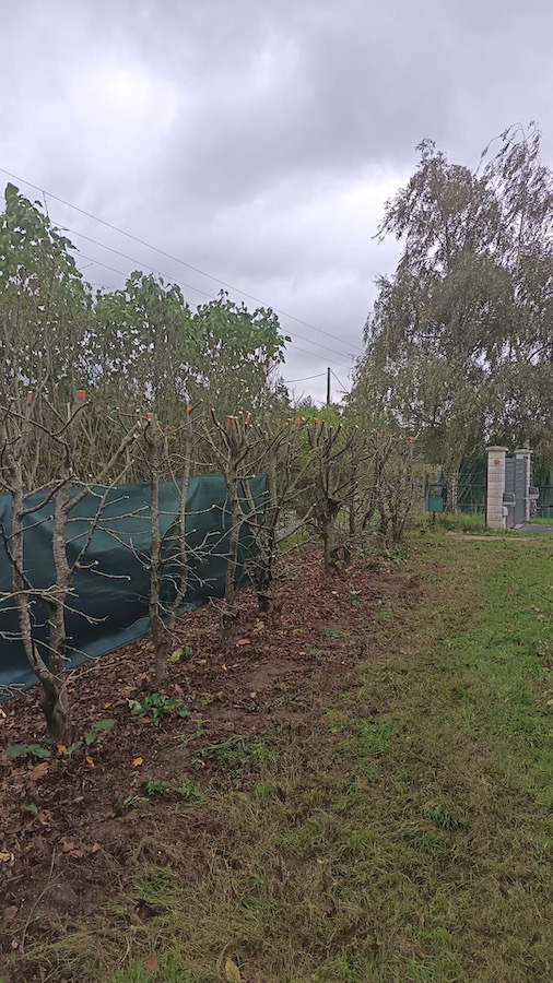 Sur les photos « avant » : La haie, composée d’arbres, avait atteint une hauteur importante, empiétant sur l’espace et devenant difficile à entretenir sans équipement spécialisé (remarquez l’échafaudage nécessaire pour l’accès).